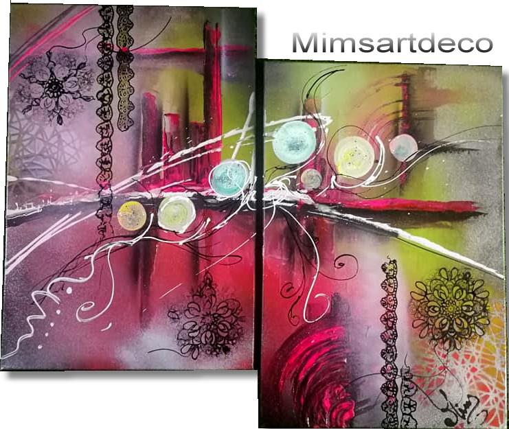 Toutes les toiles présentées sont des peintures abstraites réalisées 100% à la main .