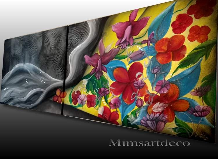Un tableau original composé de 2 toiles dont chaque peinture a était réfléchie pour une ensemble harmonieux .