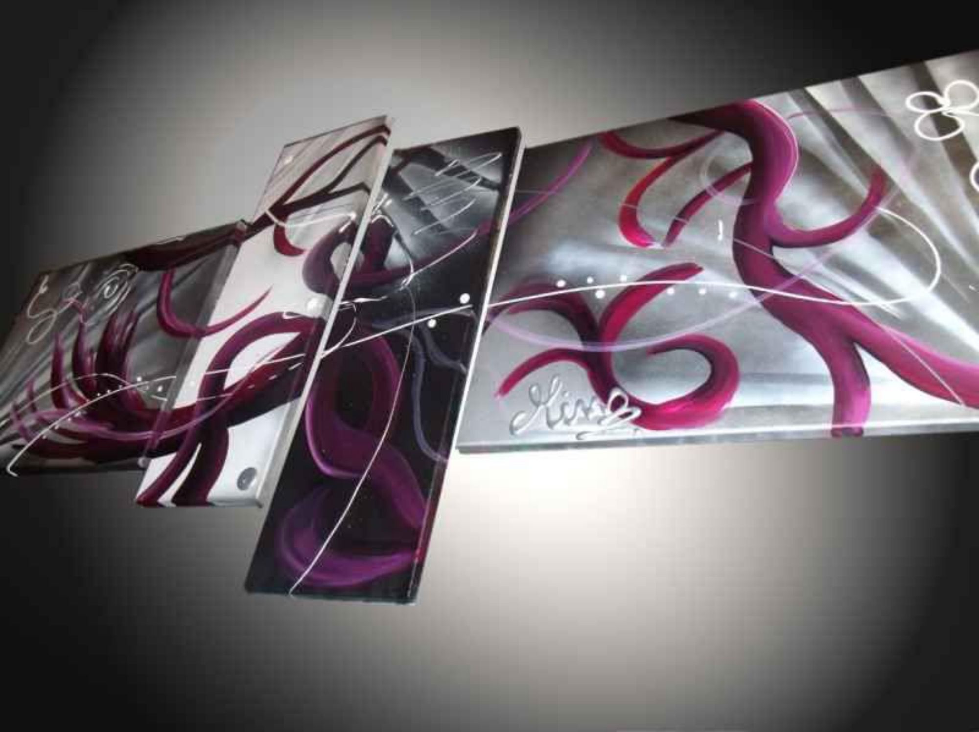 Toutes les toiles présentées sont des peintures abstraites  réalisées 100% à la main .