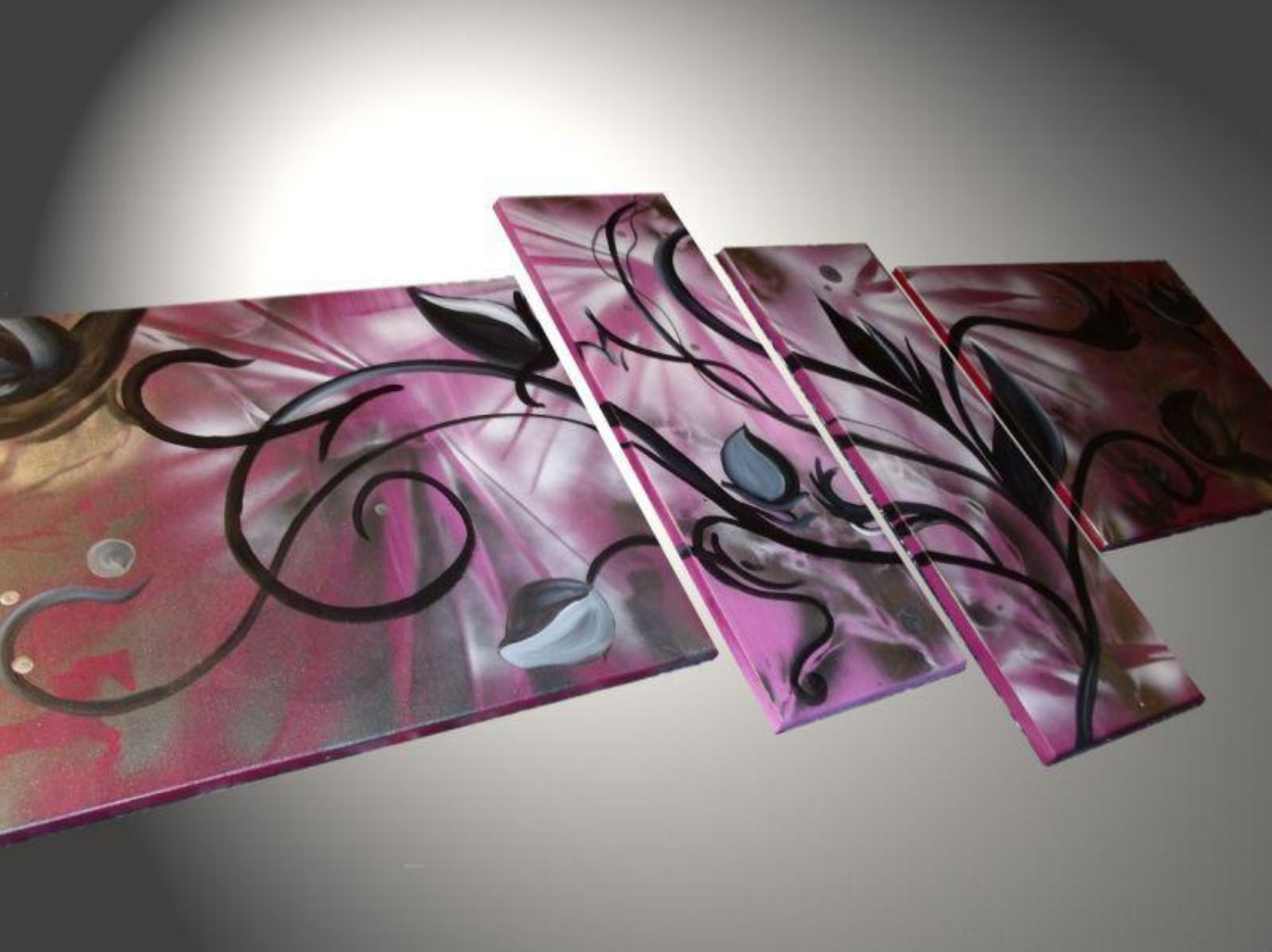 Toutes les toiles présentées sont des peintures abstraites réalisées 100% à la main .